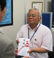 九州労働金庫福岡県本部(福岡市中央区大手門3丁目)の梶原正実本部長は8日、中央区天神1丁目の西日本新聞民生事業団の事務局を訪れ、チャリティーゴルフコンペから社会福祉資金として14万7千円を寄託する目録を届けました。同本部のコンペは5月24日に開催され、参加した147人から1人当たり千円の寄付を募りました。